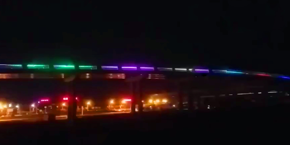 戶外燈光案列,戶外RGB電源案例甘肅蘭州機場高架橋項目介紹 · 項目:甘肅蘭州機場高架橋·小聯(lián)控 · 時間:2019 · 地點:甘肅蘭州 UCS512C4-三通道點光源