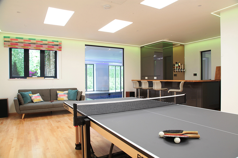 運(yùn)動室和室內(nèi)游泳池區(qū)域,多區(qū)域多種不同的燈光同時(shí)控制,營造不同的場景氛圍。