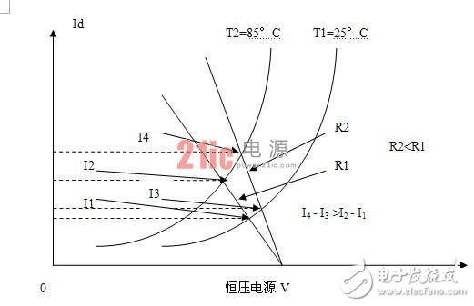 溫升以后,N個伏安特性都左移,就使電流的增加也加大了N倍。如果采用恒流電源供電,那么溫升以后,仍然能夠保持電流恒定為Io。