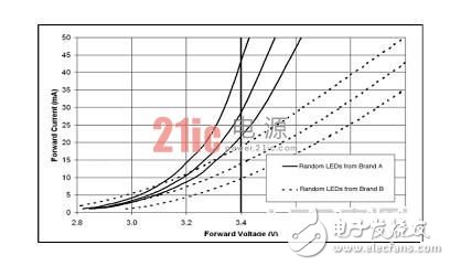 由于LED伏安特性的離散性,不但不同廠家生產的同樣瓦數的LED伏安特性不一樣,就是同一廠家生產的同一型號的LED其伏安特性也是不同的。