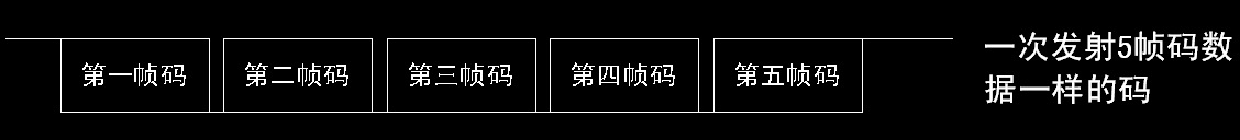 一次完整的發(fā)射包含以下數據:第1幀數據+第2幀數據+第3幀數據+第4幀數據+第5幀數 據;5幀數據完全一樣。