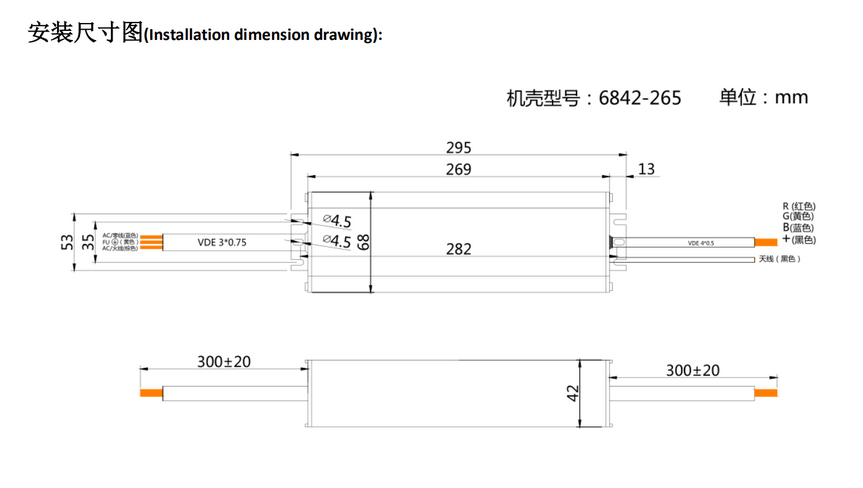 采用LED專用防水環(huán)氧樹脂AB膠,通過導(dǎo)熱膠與鋁殼接觸,散熱效果極佳,滿負(fù)載輸出時(shí)外殼表面溫度不超過65℃(在環(huán)境25℃測量) ,室內(nèi)戶外均可使用,兩端各設(shè)兩個(gè)機(jī)械固定孔位,適用于多種內(nèi)部安裝應(yīng)用。
