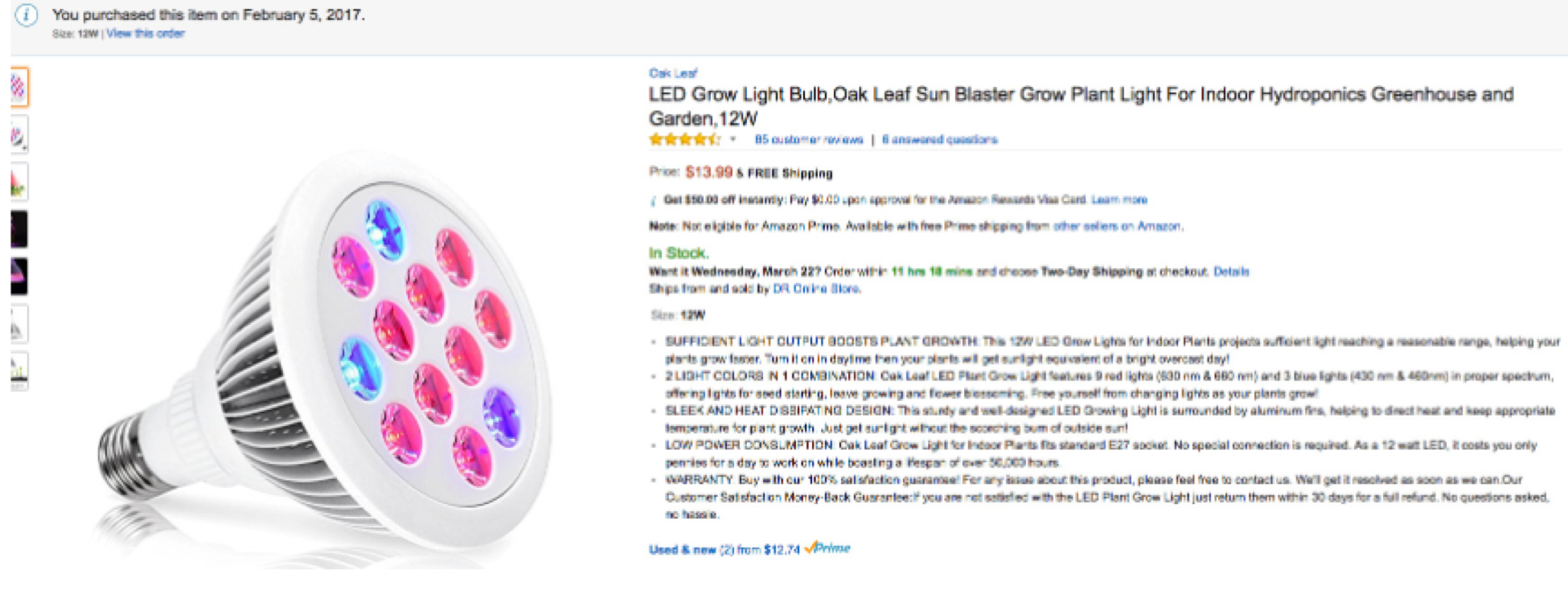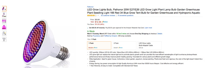 5. 買它的時候的建議-建議選擇能量輸出在12-24瓦特的,這主要還是看你的燈能承受多少的,而不是選越高的瓦特數越好。為了照這個我特意去買了個燈呢。?最好看看紅和藍的波長,藍的可以控制在430-460nm之間,紅光可以控制在630-660nm之間。我的我是在亞馬遜買的,看到過兩個,都不錯: