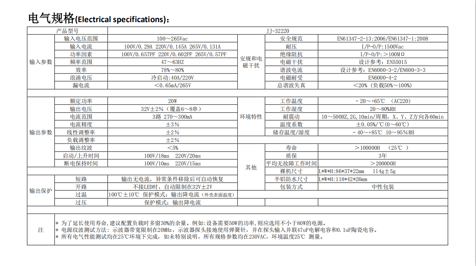 交流100~265V輸入,全球通用。