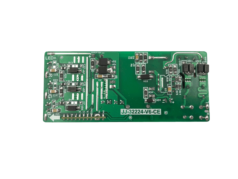 比市面上采用傳統的1+1方式(開關電源+程序控制小板)在效率和恒流上都有很大的優勢,市面上的都是采用1+1的控制模式,及小板上面都是采用色環電阻限壓恒流。這種方案成本低廉,而且由于色環電阻的特性,造成此類產品的輸出電流會因長時間點亮造成色環電阻升溫,內部阻值的變化而改變電流并且浮動大。對燈珠影響非常大,大大的降低了使用壽命及燈具光衰問題。