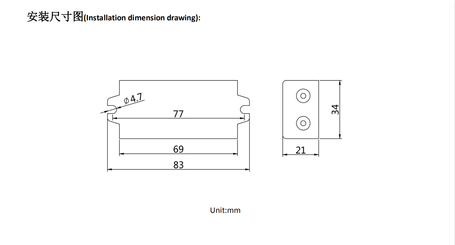 采用LED專用防水環氧樹脂AB膠,通過導熱膠與鋁殼接觸,散熱效果極佳,滿負載輸出時外殼表面溫度不超過65℃(在環境25℃測量) ,室內戶外均可使用,兩端各設兩個機械固定孔位,適用于多種內部安裝應用。
