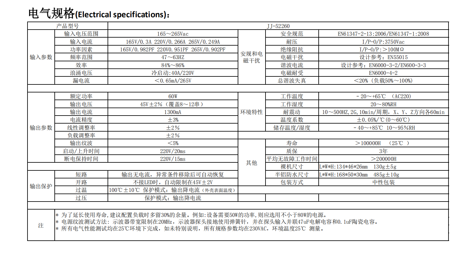 本款產品是一款高穩定性LED/RGB高壓隔離恒流驅動電源。內部濾波器件使用品牌綠寶石電容,高頻低阻,105℃高溫下,時長8000H(部分10000H),低溫時間更長。專利的核心元件,較寬的電壓輸入,高精確的恒流輸出,完善的保護功能,以及超薄的外觀結構會使您的燈具更加趨于完美。