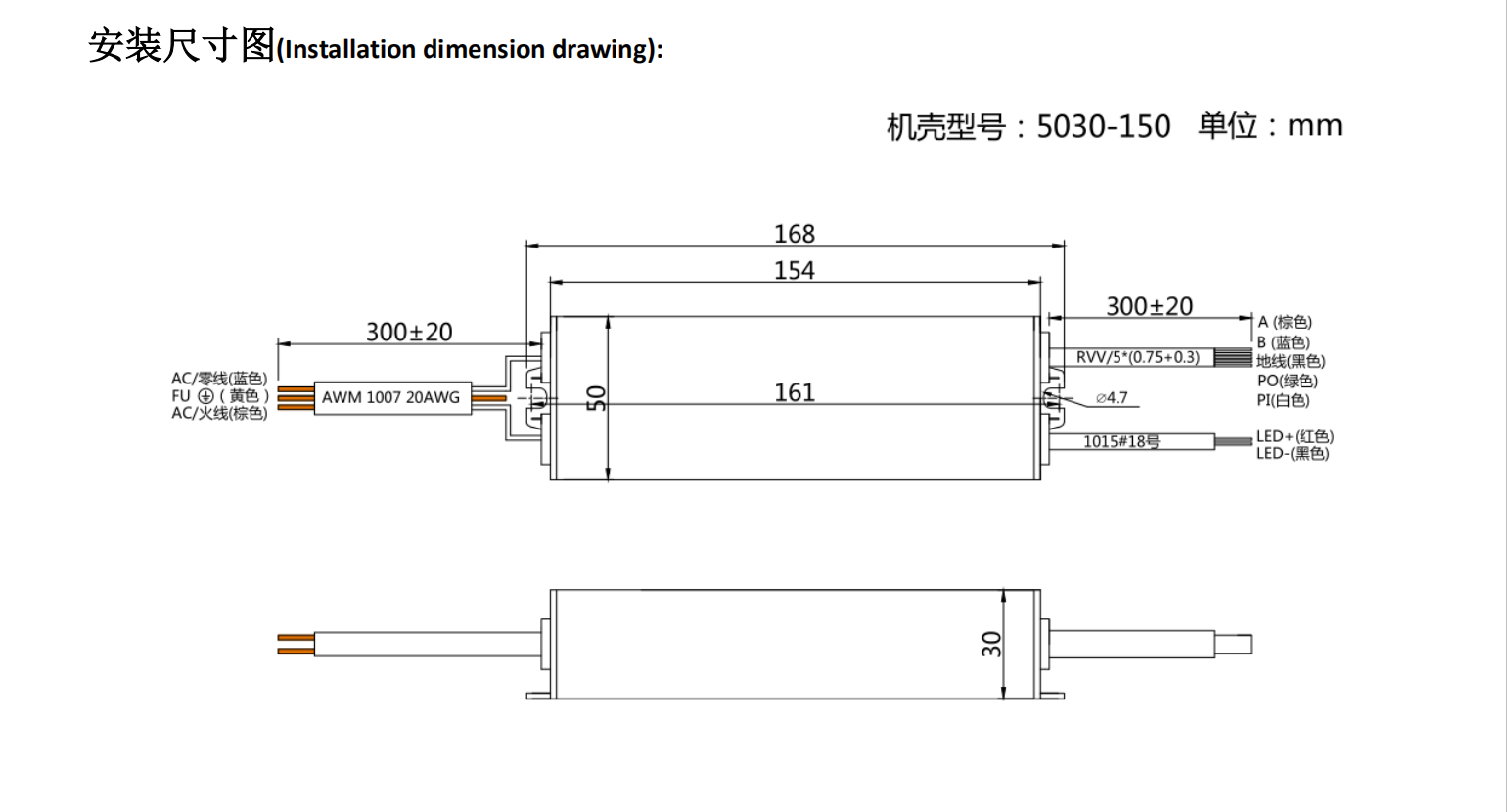 采用LED專用防水環氧樹脂AB膠,通過導熱膠與鋁殼接觸,散熱效果極佳,滿負載輸出時外殼表面溫度不超過65℃(在環境25℃測量) ,室內戶外均可使用,兩端各設兩個機械固定孔位,適用于多種內部安裝應用。